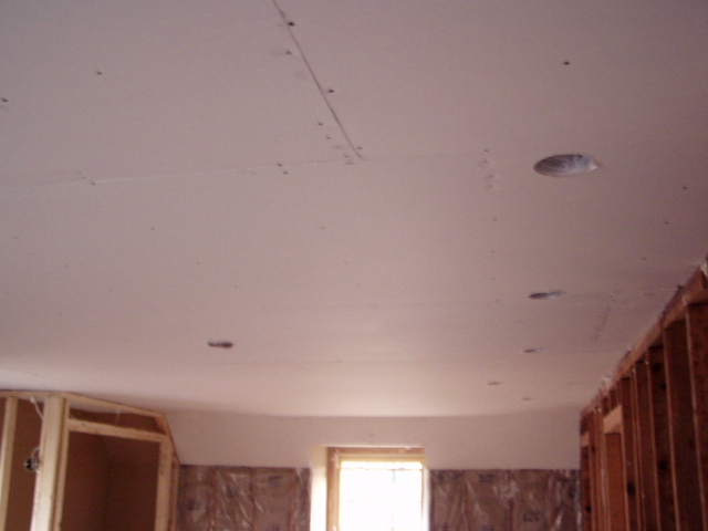 Ceiling in the master bath. They should have it all "rocked" in 3 or four days... |