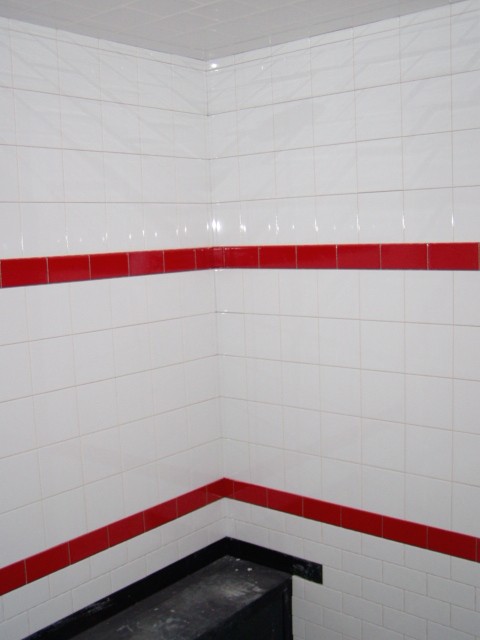 Tiling in the master shower...