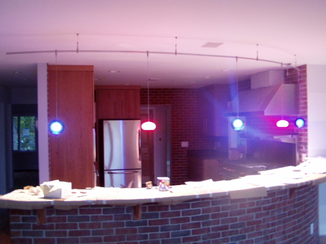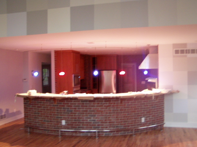 The lights over the bar are in...